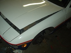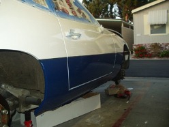 After the sixth coat dried, I was getting impatient. The car looked fantastic, and even without wetsanding or polishing the paint, it shined really well and looked smooth. It is a track car after all, so I did nothing but wipe the few bugs that landed in the paint off and began to apply the vinyl stripes.