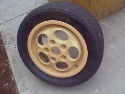 I ran with the stock colored phone dials, but they really stood out like a sore thumb. I did my best to color match the wheels to the brownish stipe that runs down the side of the car. The prep was similar to the body of the car. Just some 220 grit paper, acetone and paint. Nothing special to the track donkey.