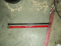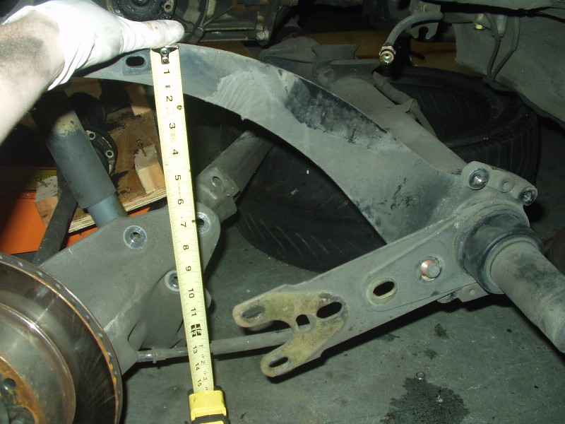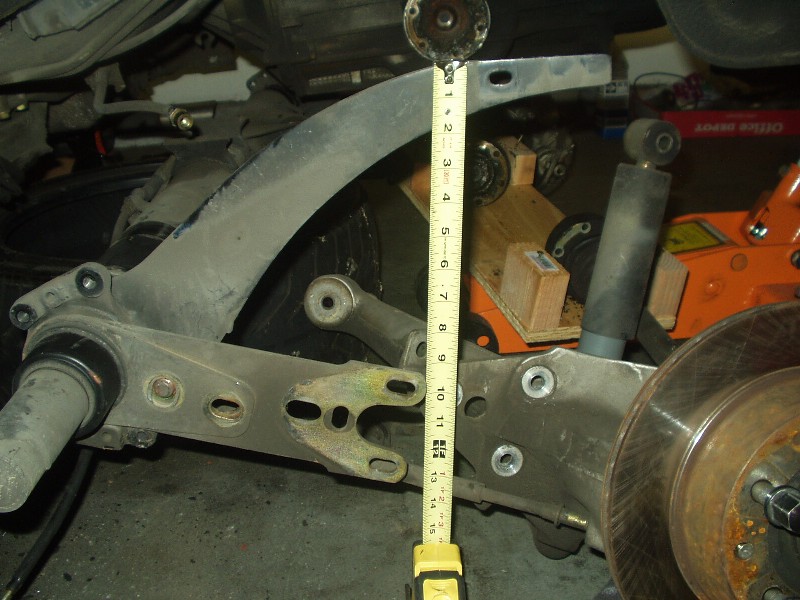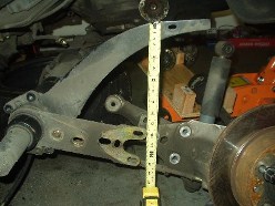 The torsion tube is a beast. I decided to just leave it under the car, since I was doing everything all by my lonesome. With the trailing arms disconnected, I took measurements of the stock bars unloaded for reference. I used this same measuring technique to index the new bars too with great success! (Thanks to Joe Paluch again)
