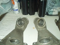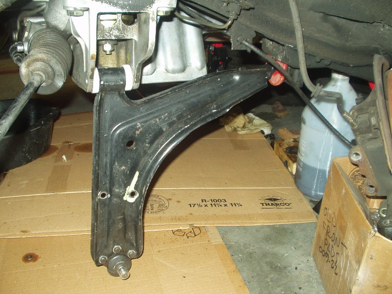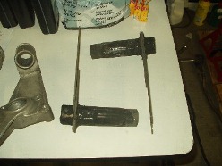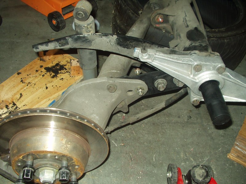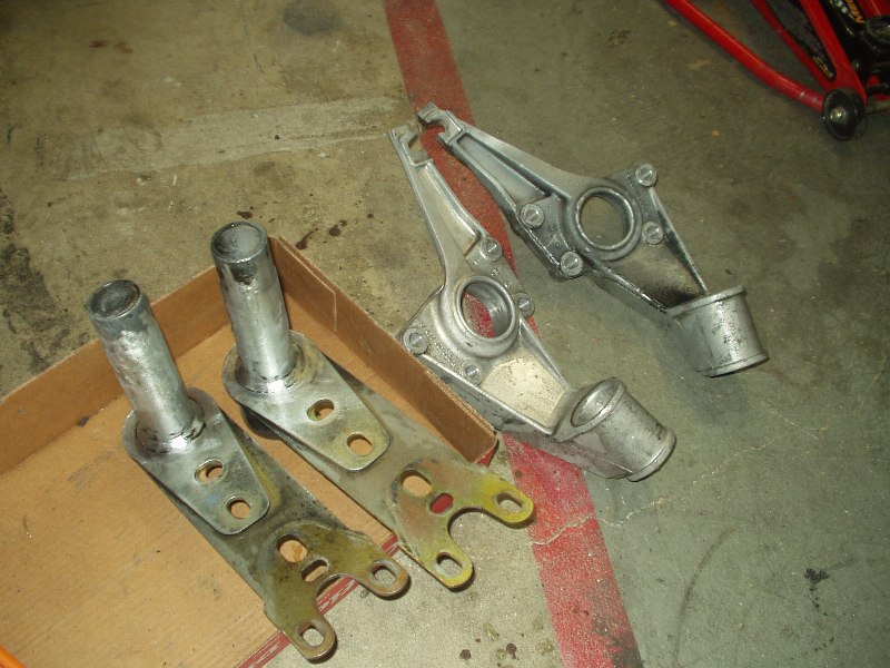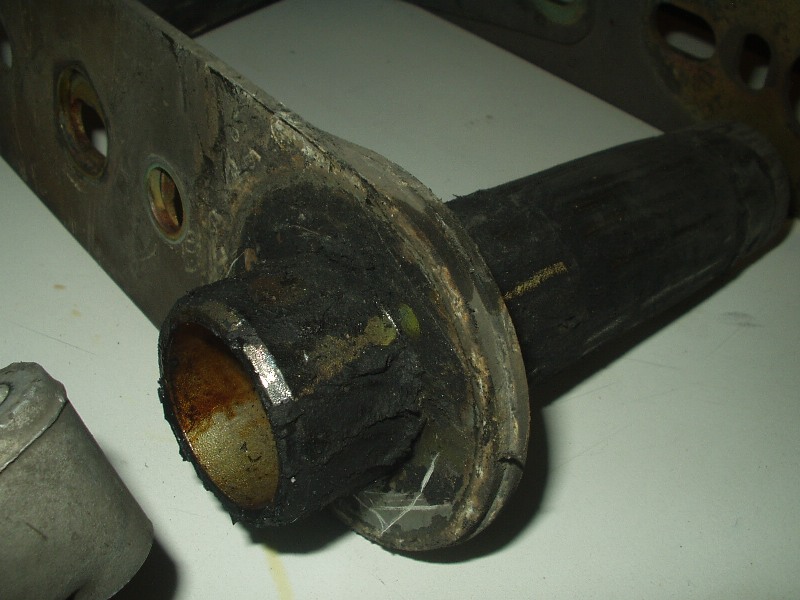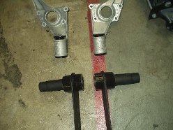 The stock rubber was in decent shape, but who needs it. The spring plate bushings were a bitch, but a torch and some patience, I got the bulk off. My brother bought a 6-ton press just for this job (and some persuasion from me) and we punched out the torsion carrier bushings. In my defense, he's got two 924's and will need the press when I'm helping him get both his cars ready for service. A wire wheel, more patience and a tolerance for a huge f-ing mess got good results.