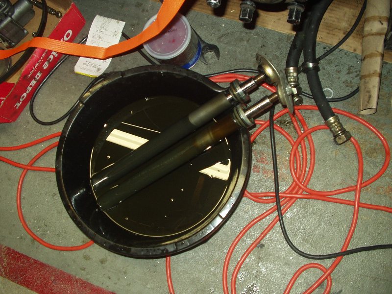 The oil front those struts was the most foul smelling liquid I'd ever smelled in my life. Other than that, getting the strut housings ready for drop in Koni catridges was cake. Camberplates and an adjustable spring perch kit make a nice combo!