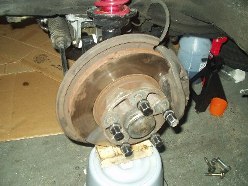 To support the torsion tube, I placed an old 225 series tire under the center of the tube and went to town get- ting it loose. This is probably really bad, but I used the hub break it loose by jumping up and down on each side. Finally, once it started to move, I used a large pickle fork pry on anything I could get leverage on. Thankfully I didn't crack any aluminum.