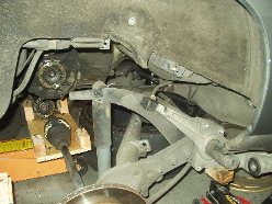 With the front done, it was time to tackle the murderous, satan-child of Dr. Porsche. The "torsion bars suck!" theme has been beaten to death, so I'll shut up now. For a car nut, I HATE getting completely under them. I know an earthquake is a long shot, but that doesn't help my nerves much. A spare set of wheels and tires (8" wide, not shown) under the rockers helps calm my nerves a bit though.